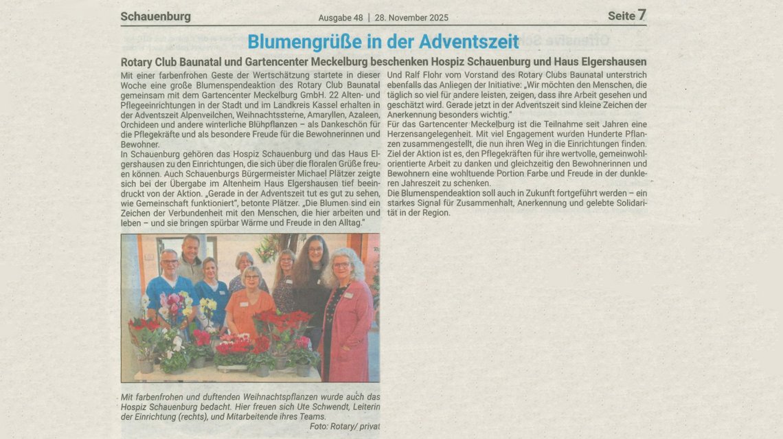Blumenspendeaktion des Rotary Club Baunatal und des Gartencenters Meckelburg GmbH
