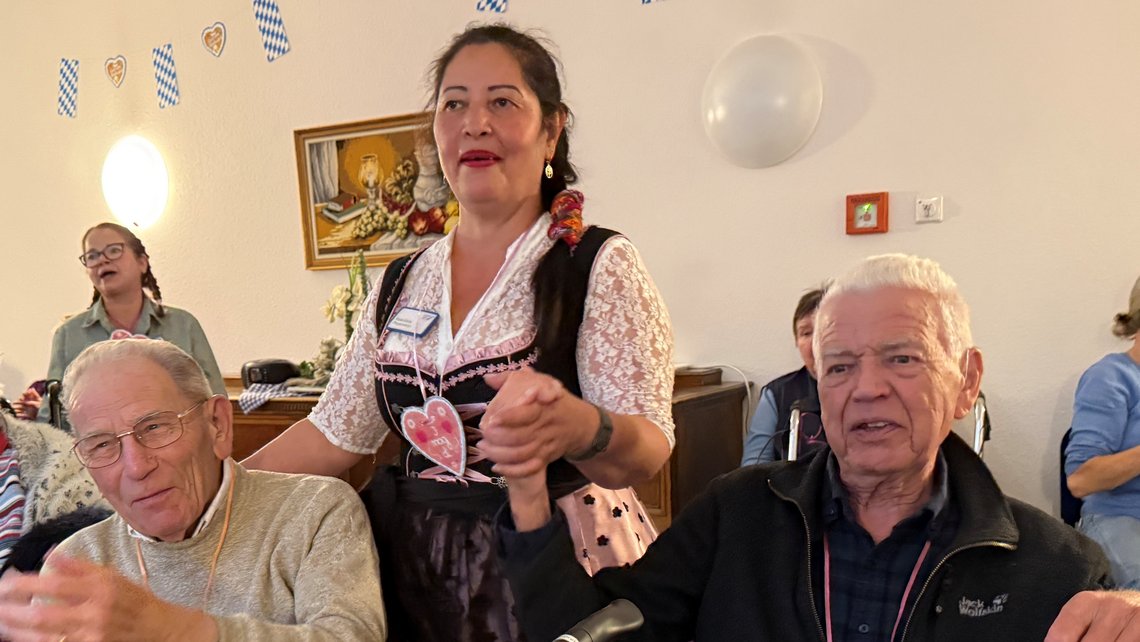 Das Haus war dem Motto entsprechend dekoriert und Dank einer Gruppe von Bewohnerinnen wurden alle Gäste mit liebevoll gebastelten Lebkuchenherzen ausgestattet. Einige Mitarbeitende hatten ihre Kleidung am Thema ausgerichtet und so gab es neben farbenfrohen Eigenkreationen auch original bayrische Dirndl zu sehen.